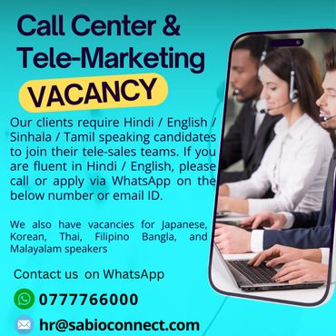 Hiring - Hindi speaking call center executives. Contact via WhatsApp at +94777766000.